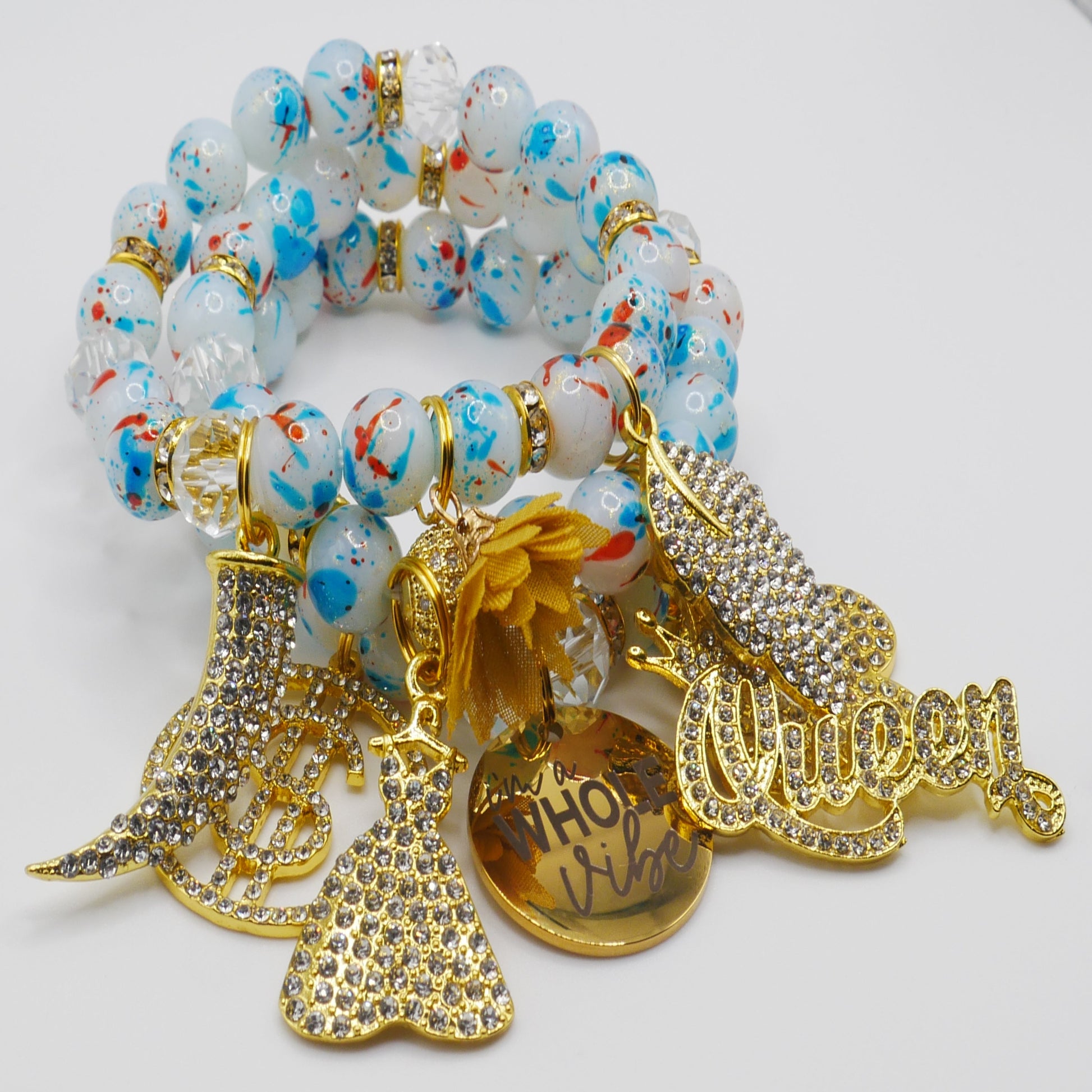 I'm a Whole Vibe Bracelet Stack β Blue & Gold Luxury Statement Set