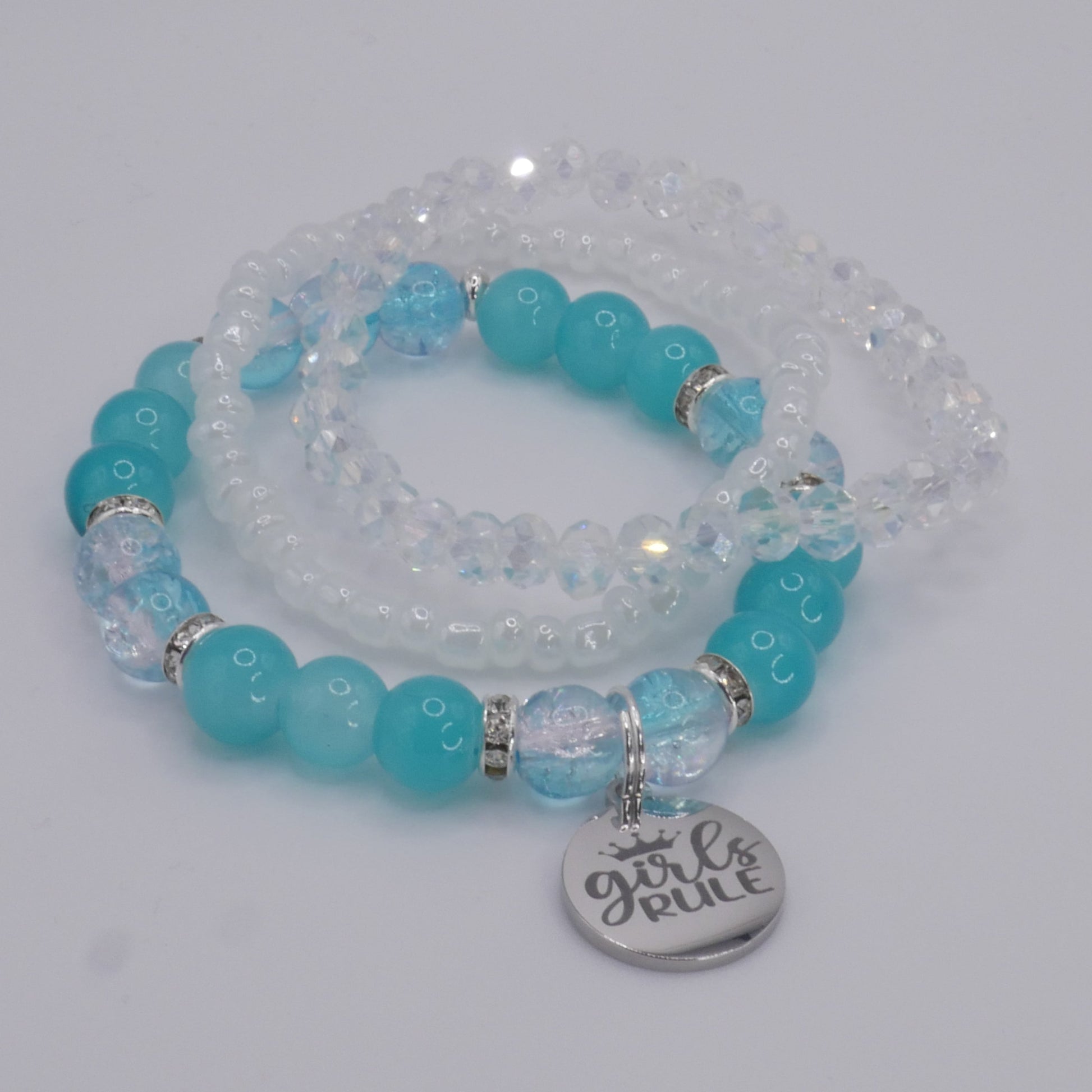 Girls Rule Bracelet Stack – Aqua & White Handmade Bracelet Set for Girls