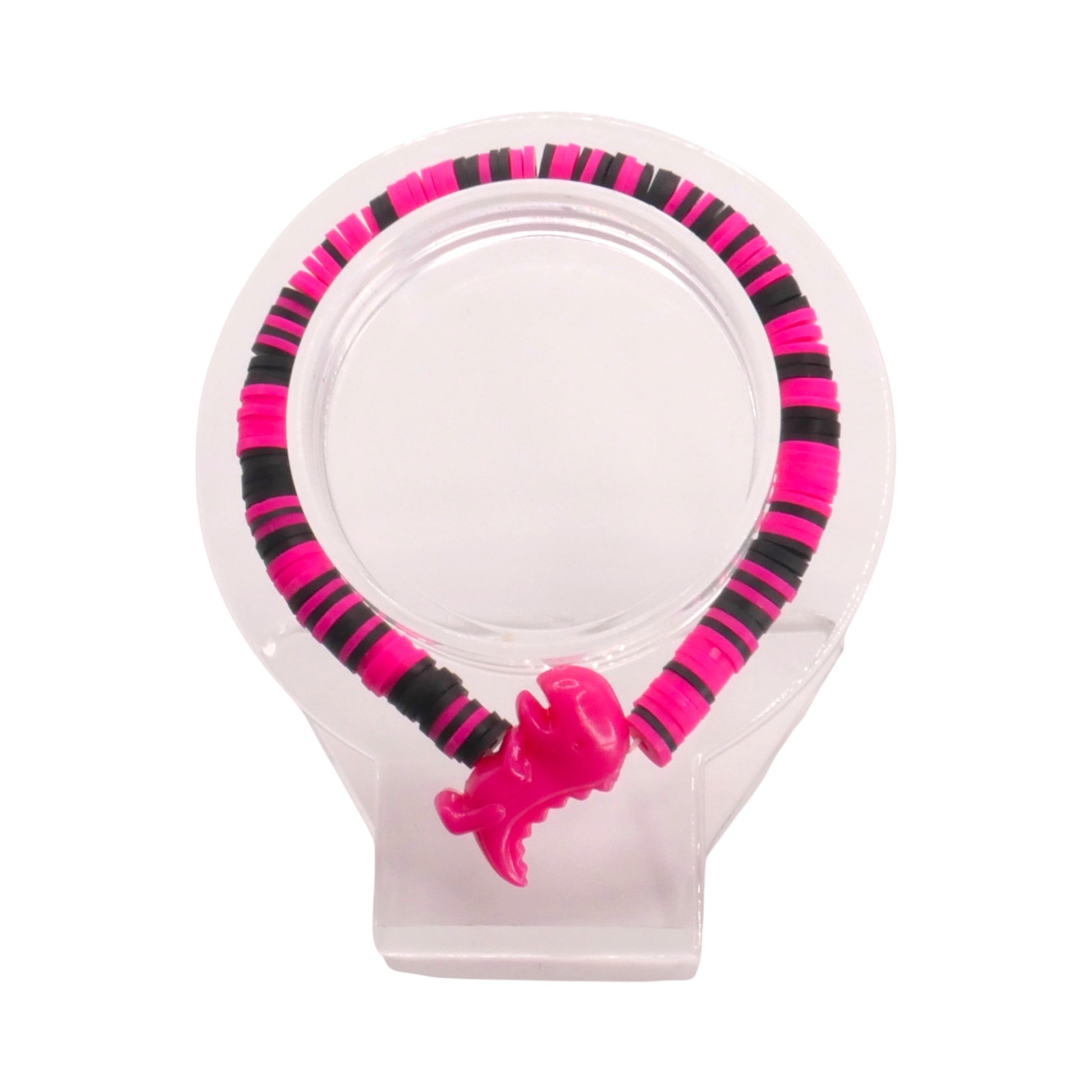 Handmade Hot pink and jet black beads with bold, high-contrast striping for a bright, edgy pop of color.