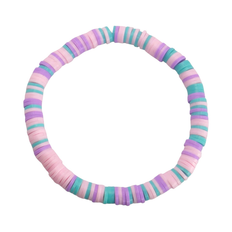 The Sugar Plum Breeze Bracelet is a dreamy blend of lavender, mint, blush pink, and creamy white clay beads that feel like a gentle breeze on a spring day. Its soothing color palette and candy-soft vibe make it perfect for girls who love soft pastels, fairy aesthetics, and whimsical style.